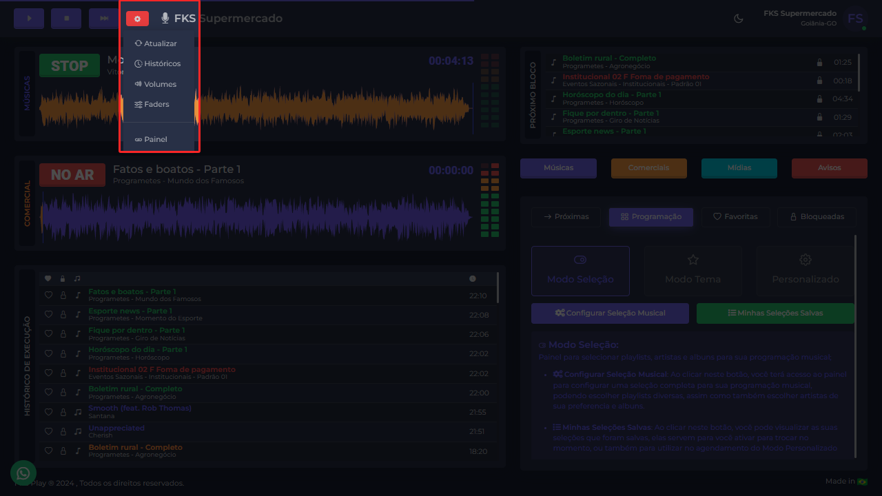 Espero que isso ajude a esclarecer como configurar a programação musical na plataforma FksPlay. Se tiver mais alguma dúvida ou precisar de mais informações, estou à disposição!