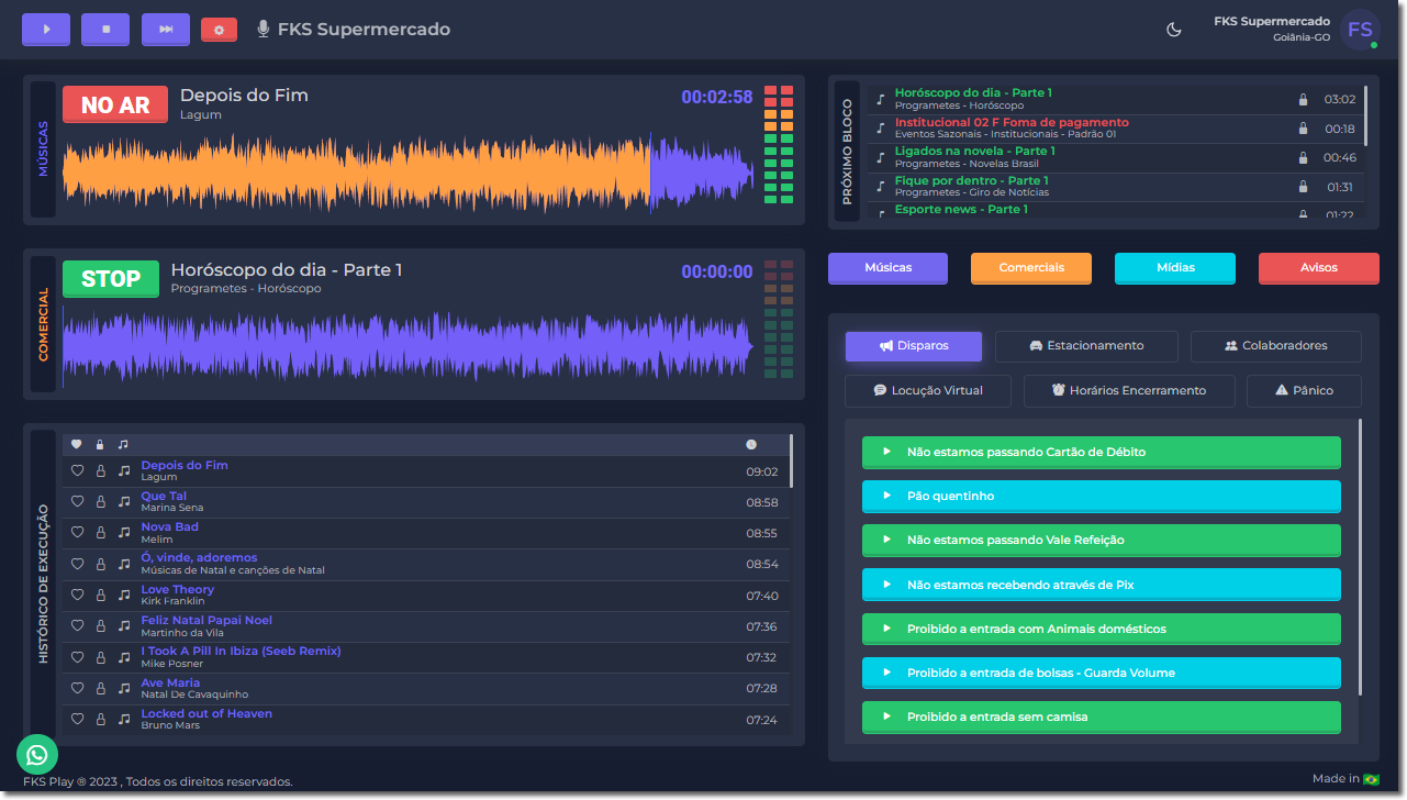 Com o FksPlay, o alcance e a eficiência da rádio indoor se ampliam ainda mais. Nossos recursos avançados, como playlists automatizadas, agendamento de anúncios em horários estratégicos e integração com a identidade sonora da marca, garantem resultados superiores. Além disso, nossos módulos exclusivos permitem que cada cliente configure sua programação de forma prática e personalizada, maximizando o retorno sobre o investimento.